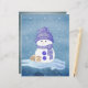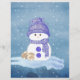 Two brown and white bunnies fall asleep snuggled up to a little snowman dressed in blue, as snow falls around them. Totally adorable winter image on this scrapbook paper! The back is dark gray with snow falling.