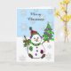 Snowman and Christmas Tree and snowflakes, puppy in gift box Christmas card. Personalise this card by adding your names on the inside of the card.