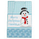 Cute snowman and snowflake design on blue and white personalised Christmas gift bags. Customise with your own text. Image and text on front and back.