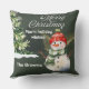 Snowman and Sparkling Tree Christmas Scene Cushion