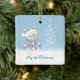 Baby snowman and tree covered with snow Baby's First Christmas Ornament