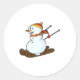 Snowman as Skier with Skis & Cap Classic Round Sticker