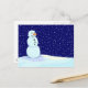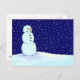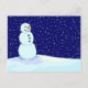 This snowman sits in a night snowfall and smiles. The light of the moon gently illuminates our snowy friend, his charcoal buttons and mouth, and carrot nose.