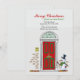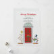 A red door with a snowman in front that features your new house number. Add a holiday message and mail early so that everyone will have your new address. Snowman by pixaroma.