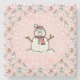 Snowman Baby's First Christmas Pink Name Stone Coaster