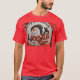 I give wanted to give this a 4 instead of a 5 because these Basic DARK T0shirts run unexpectedly SLIM or Narrow. Which is great if you do not have a potbelly, but I have a paunch. It isn't the shirt's fault that I've got a beer belly. The design and shirt itself is a quality cotton shirt. The color is more of a deep purple, but still a very pretty color. The Basic DARK T-shirts run a bit SLIMMER than the Basic Ts. The neck is a fraction narrower (or seems to be narrower) also. I'm a paunchy middle-aged woman and my neck is 12 inches (31cm) thick and the neckline fell about the same as in the photo of the man, and I had the desire to tug it a bit. So if you're a thick necked man or like loose shirts, be aware these are slimmer shirts. Once I get rid of my lockdown paunch it'll look great. The shirt washed well in cold water with no apparent bleeding. We don't have a dryer, so it hung dry. Did not shrink. Love the colors and the design. The design looks smaller on my shirt than it does on the model on-line. But still, it looks good on the shirt. The printing looks as it does on the model, just the size seems fractionally smaller. Washed garment in cold water, hung dry and design appeared unaffected.