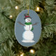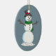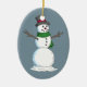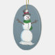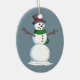 A cheery-but-chilly looking snowman wears a red-ribboned top hat and green scarf in this wintry illustration by Richard H. Fay.