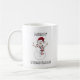 Crisp red and white holiday design on a mug great for cookies and milk! Cheerful snowman with Santa hat and "Merry Christmas!" text.