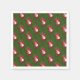 This Christmas holiday napkin design features a tiled photograph of a red and green stocking with an adorable snowman dressed in a seasonal plaid scarf and hat set over a green background. Click customise to add text in a typeface style, colour and size you prefer. The design is also available in a red and white background.