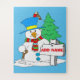 Snowman style poster on puzzles by local artist. Add text or names to puzzle.