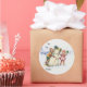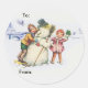 Two children building a snowman. Vintage Gift Sticker ......... To: / From:
