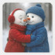 Snowman Couple Hugging in Winter Forest Square Sticker