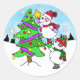 Festive whimsical holiday Snowman Couple putting Star on Christmas Tree Classic Round Stickers.
