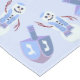 This cute Hanukkah tablecloth has an option to personalise it with your family name and a Happy Hanukkah message in the centre. The holiday tablecloth design features a Jewish snowman and matching dreidels in soft blues and dusky purple alternating around the edge of the fabric. This border design accents the light pastel blue background colour and sets the tone for your Chanukah party or dinner. Add your custom text in the centre of the custom tablecloth in a dark blue font or erase it if you prefer no wording. Add a unique designer touch to your Festival of Lights decor with this cute personalised Hanukkah tablecloth.
