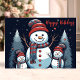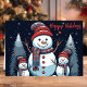 Celebrate the holiday season with this adorable card featuring a snowman family in a snowy winter forest. The "Happy Holidays" text and charming snowman design bring warmth and cheer, perfect for sending to loved ones during the festive season.