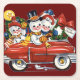 Snowman Family Out For a Drive Christmas Square Paper Coaster