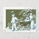 Snowman Family Walk Stroll Snow Postcard