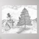 Snowman Grayscale Pencil drawing christmas scene Poster