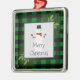 Snowman Green Buffalo Plaid Ceramic Ornament