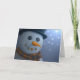 Send your Seasons Greetings with this blank winter greeting card that features a close-up illustration of a snowman against a snowy blue background.