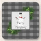 Snowman Grey Buffalo Plaid Plastic Coaster