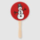 Illustration for Christmas with cute, smiley snowman decoration and Merry Christmas text design. It is possible to change the background colour and to add different one to the design with your choice.