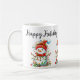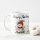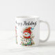 A repeat pattern of a snowman tangled in colourful lights with “Happy Holidays” script written in black lettering makes this mug fun and festive for the holiday season.
