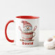 Add a personal touch to your holiday mornings with this customisable snowman cocoa mug! Featuring an adorable snowman in a marshmallow-filled cup, topped with candy canes and a cosy knit hat, this festive mug can be personalised with any name. Perfect for hot cocoa, coffee, or tea, it makes a thoughtful Christmas gift for kids, friends, family, and snowman lovers alike.