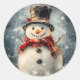 Snowman Illustration with Rustic Snowflakes Classic Round Sticker