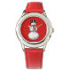 Snowman in a Top Hat, the watch hands are his arms. Children's style. Background Colour Customisable. I have used red but you can edit the background colour as you desire.