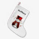 This Christmas stocking features a cute snowman in a deep red velvet cape and top hat. The name text is customisable.