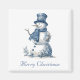 watercolor painting of a beautifully decorated snowman in Delft Blue colours