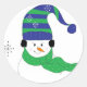 Snowman in Striped Hat Classic Round Sticker