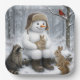 Snowman In Winter Woods With Animal Friends Paper Plate