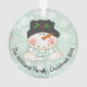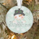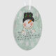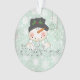 A cute, easy to personalise Christmas holiday acrylic round ornament features a snowman with black top hat and carrot nose on a background of soft blue with white snowflakes. The front has text that reads Let it Snow and two old fashioned tree ornaments, the back has black text you can personalise with your family name and the current year! We have the matching greeting cards, envelopes, return address labels, tree skirts, stickers, and postage stamps!