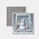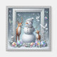 * **Subject:** Carrot-nosed snowman in stylish light grey toboggan hat & scarf.