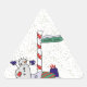 The snowman is dressed with blue gloves and buttons. The snowman is standing next to a white and red pole with a green sign that says "North Pole". The gifts are next to the pole. White snow is laying on the ground. The stickers are available with a white or black backround.