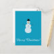 Snowman on Blue Background. Merry Christmas! Postcard