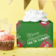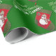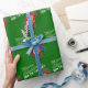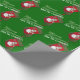 This sweet custom Christmas wrapping paper features a photograph of a red and green stocking with an adorable snowman dressed with a seasonal plaid scarf and hat set over a red background. You can remove the white outlined green Merry Christmas text added to the background then click Customise to add text in a font style, colour and size you prefer. Fill in the template field with your name, remove the text or select a font style, colour and size you prefer.