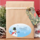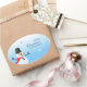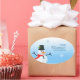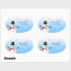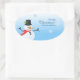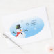 Snowman oval sticker with a cute snowman wearing a red scarf and a black hat on a fading blue background, who is enjoying the winter season as snowflakes of different shapes keep falling down. Ideal for Christmas or any other occasion. This sticker is also available in other shapes as well. © Morning 6
