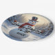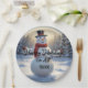 Disposable paper plates with a snowman design and "Happy Holidays" to All greeting. You update the date field at the edit prompt. AI generated art.