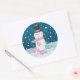 Snowman Pink Cute Personalised Christmas Holiday Classic Round Sticker