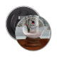 Very cute and compact little bottle opener. Also very fond of the magnet, both for sticking to the fridge and holding on to the bottle cap when trying to open it. Good quality print. As pictured.