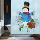 A charming snowman, warmly dressed in a bright blue coat and light blue mittens, arms open wide as if inviting you to share in the joy of the season. Topping off the look is a classic black top hat. Beside the snowman, two large snowflakes and a vibrant red poinsettia that brings a festive pop of colour. All set against a soft light blue backdrop