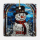 Snowman Stained Glass Style Christmas Ceramic Ornament