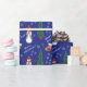 Snowman Stocking Christmas Pattern on Blue Wrapping Paper