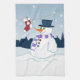 Snowman illustration in a Christmas scene with his own personal stocking pegged and hanging from a washing line.