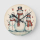 Bring cheerful charm to your space with this delightful wall clock featuring three jolly snowmen dressed in classic top hats and red scarves. Set against a snowy backdrop with bare branches and dangling ornaments, this design captures the magic of winter gatherings and holiday joy. Whether hung in a kitchen, playroom, or cosy nook, it’s a heartwarming reminder that time is best spent together.