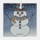 Snowman that looks like it was crochet with a snowy background.