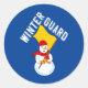 Winter Guard text with a snowman holding a flag and wearing a scarf with flags is a humourous guard design for colorguard and winter guard members at birthdays and holidays